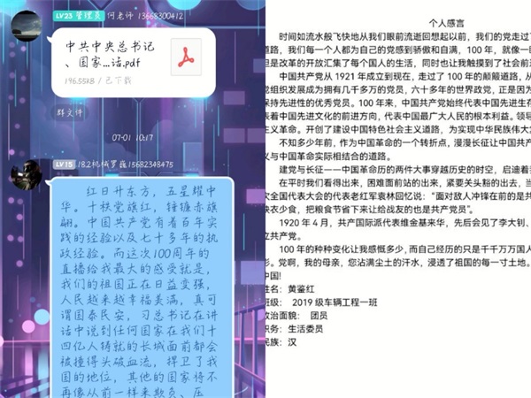 活动形式包括线上视频的观看和讨论以及提交观后感和照片。在此次学习过程中,同学们积极参与,营造了浓厚的党史学习氛围。在深入贯彻落实习近平总书记“七一”重要讲话精神的同时也发挥了红色教育资源对全体师生的激励作用,在同学们的心上烙下了不可磨灭的印记。