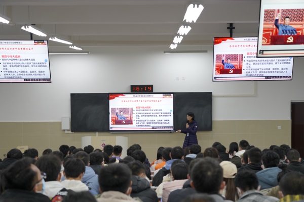 12月2日,智能学院全体党员师生在龑江C212教室隆重举行“十九届六中全会”学习会议。会议邀请黄春梅老师作为主讲人主持学习。黄老师以“6个数字带你学习六中全会”的神秘感正式引导大家进入正式的学习。