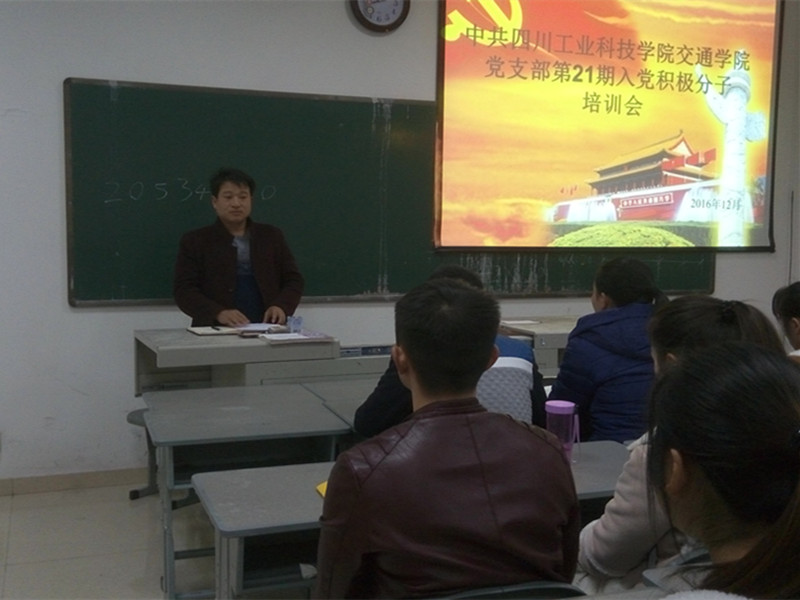 为进一步学习党的理论知识,端正入党动机,交通学院第二十一期入党积极分子培训会于22日下午5点在实训楼103隆重召开。学院党支部组织委员魏天强到会,二十一期全体入党积极分子参加会议。