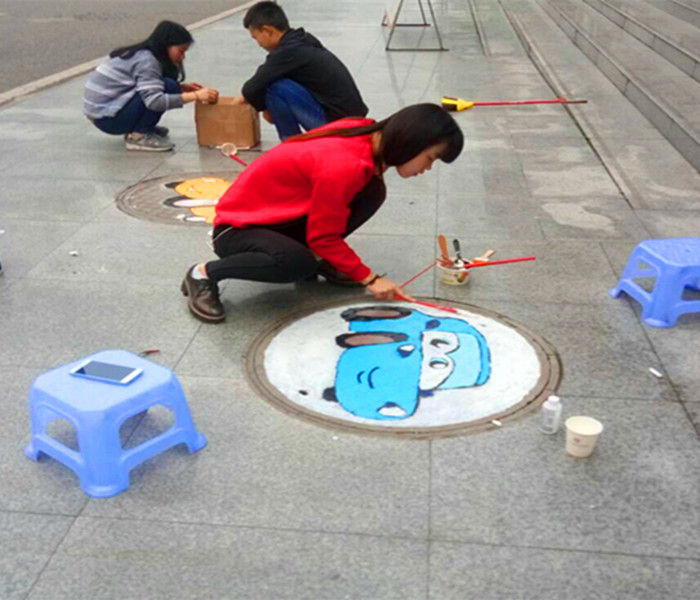 一个个原本冰冷的井盖变成了《汽车总动员》里可爱的卡通汽车形象,这既符合交通学院的特色又能让同学们在绘画中增进彼此的友谊。