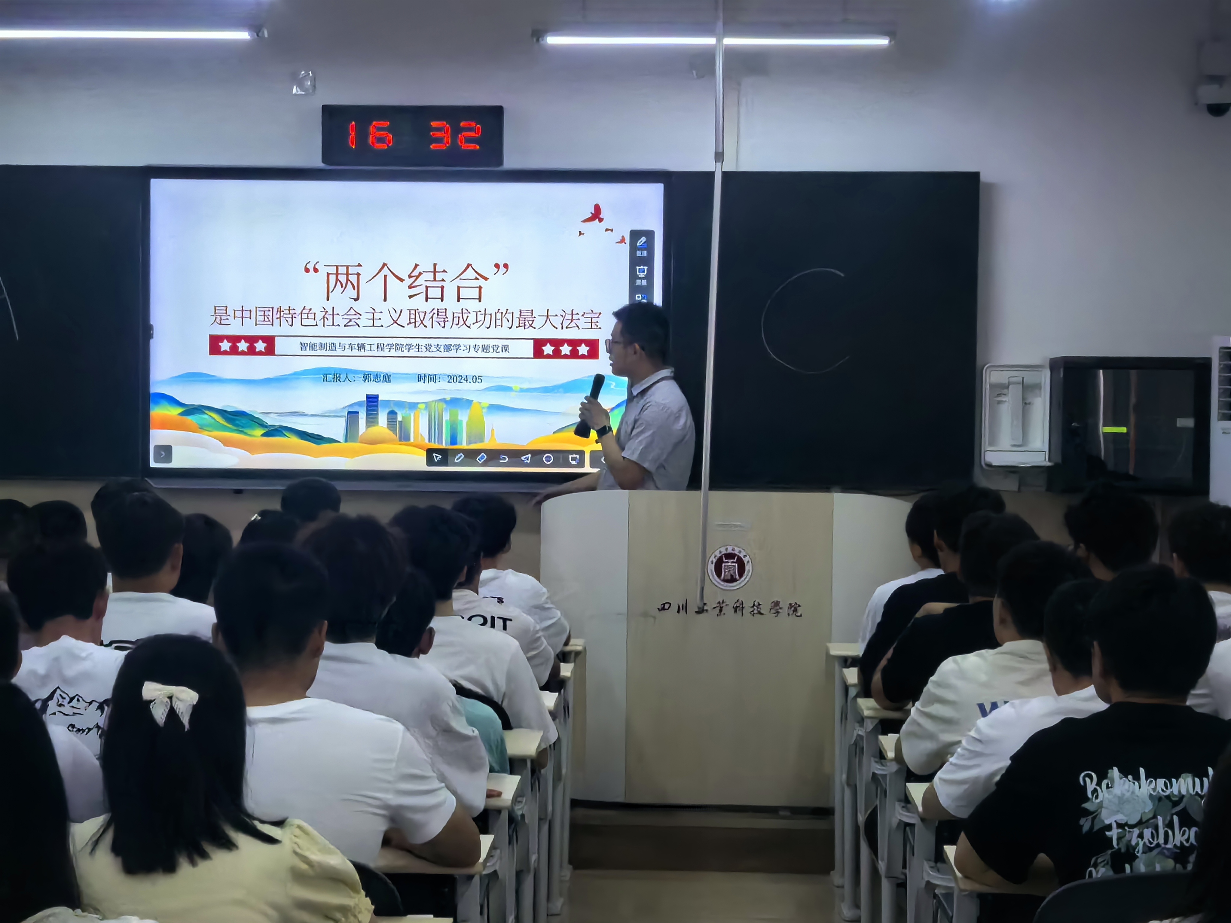 为深入学习贯彻习近平新时代中国特色社会主义思想和习近平总书记对四川工作系列重要指示精神。2024年5月20日,学院党支部开展学生专题党课学习活动,主题为:“两个结合”是中国特色社会主义取得成功的最大法宝,主讲人是学院教师郭志庭。