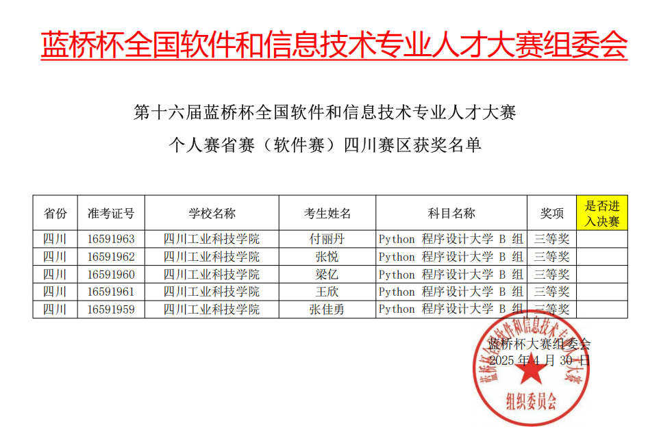 蓝桥杯大赛连续五年入选中国高等教育学会“全国普通高校学科竞赛排行榜”,其科学完善的人才培养体系、权威公正的竞赛选拔标准以及显著的人才选拔效果得到教育部门的高度认可。目前,包括四川在内的全国十余个省份已将蓝桥杯大赛列入省级大学生竞赛名录。
