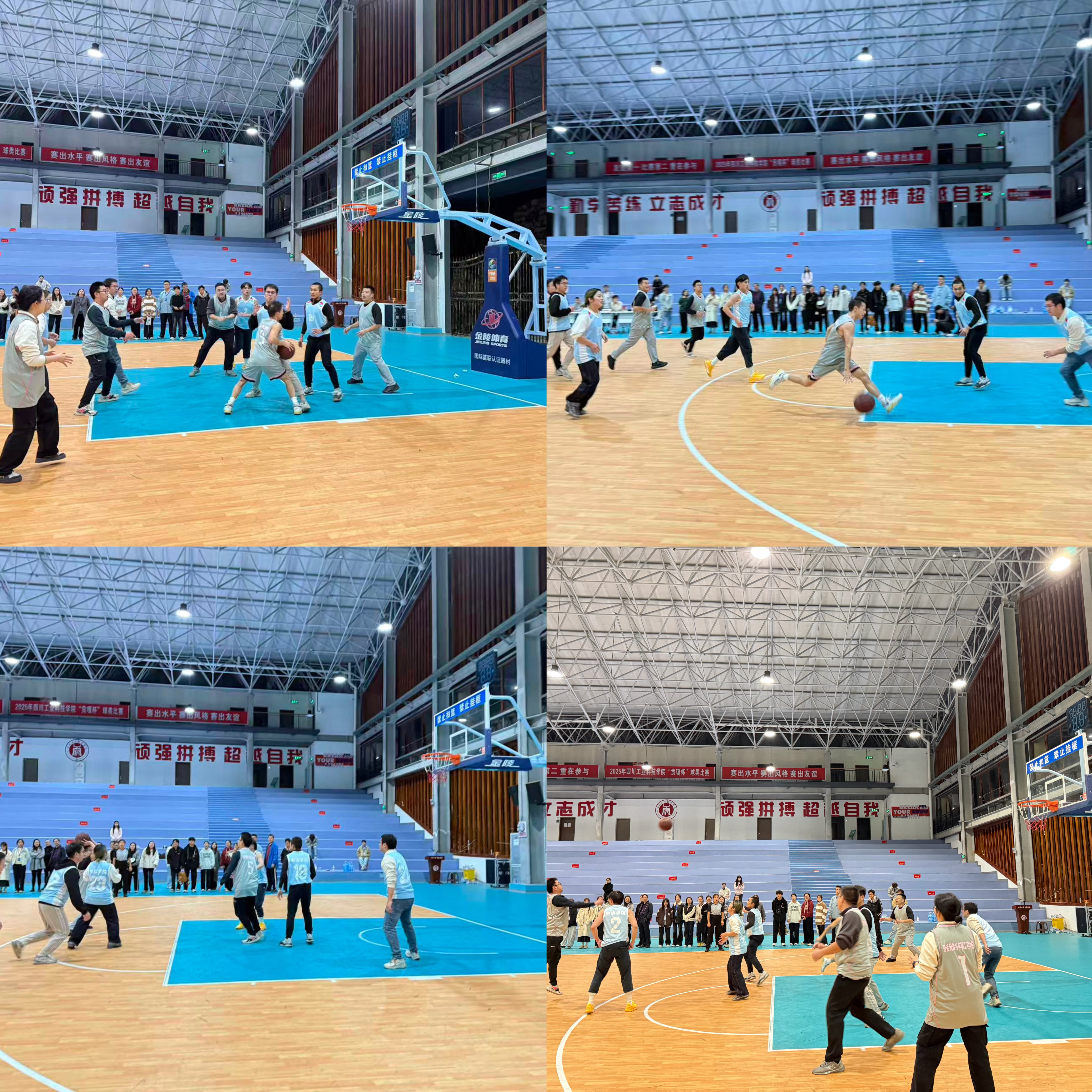 篮球赛中,队员们配合默契、攻防有度,精彩的团队表现赢得了现场阵阵掌声,充分展现出学院教师团结拼搏、昂扬向上的精神风貌。
