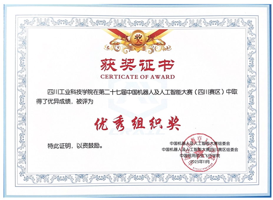 近日,第二十七届中国机器人及人工智能大赛(四川赛区)顺利落幕。学校凭借出色的赛事组织工作和卓越的参赛表现,荣获大赛“优秀组织奖”,充分展现了学校在人工智能与机器人领域的实践育人成果。