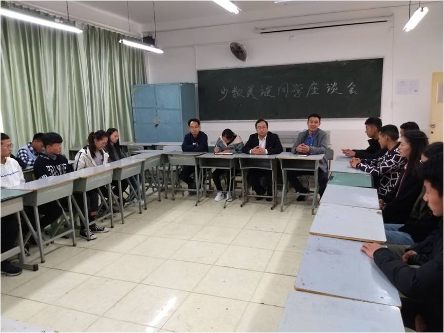 10月17日上午,我院学工部在院长倪雨的带领下,来到绵竹校区,听取我院近期学生管理工作汇报,检查教学工作。同时,在教学楼336召开少数民族学生座谈会,了解少数民族学生在校的学习、生活情况。2018级新入校的28名少数民族学生参加座谈会。