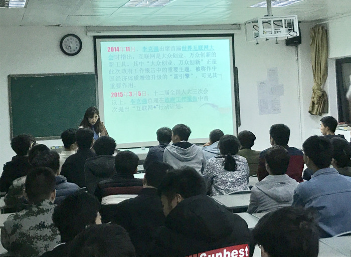 班会上,辅导员高珊老师通过PPT向同学们介绍了大学生创新创业兴起的原因、大学生创业的各种优惠政策、互联网时代特征,互联网+、创新创业典型案例,让同学们对创新创业知识有更全面深入的了解。