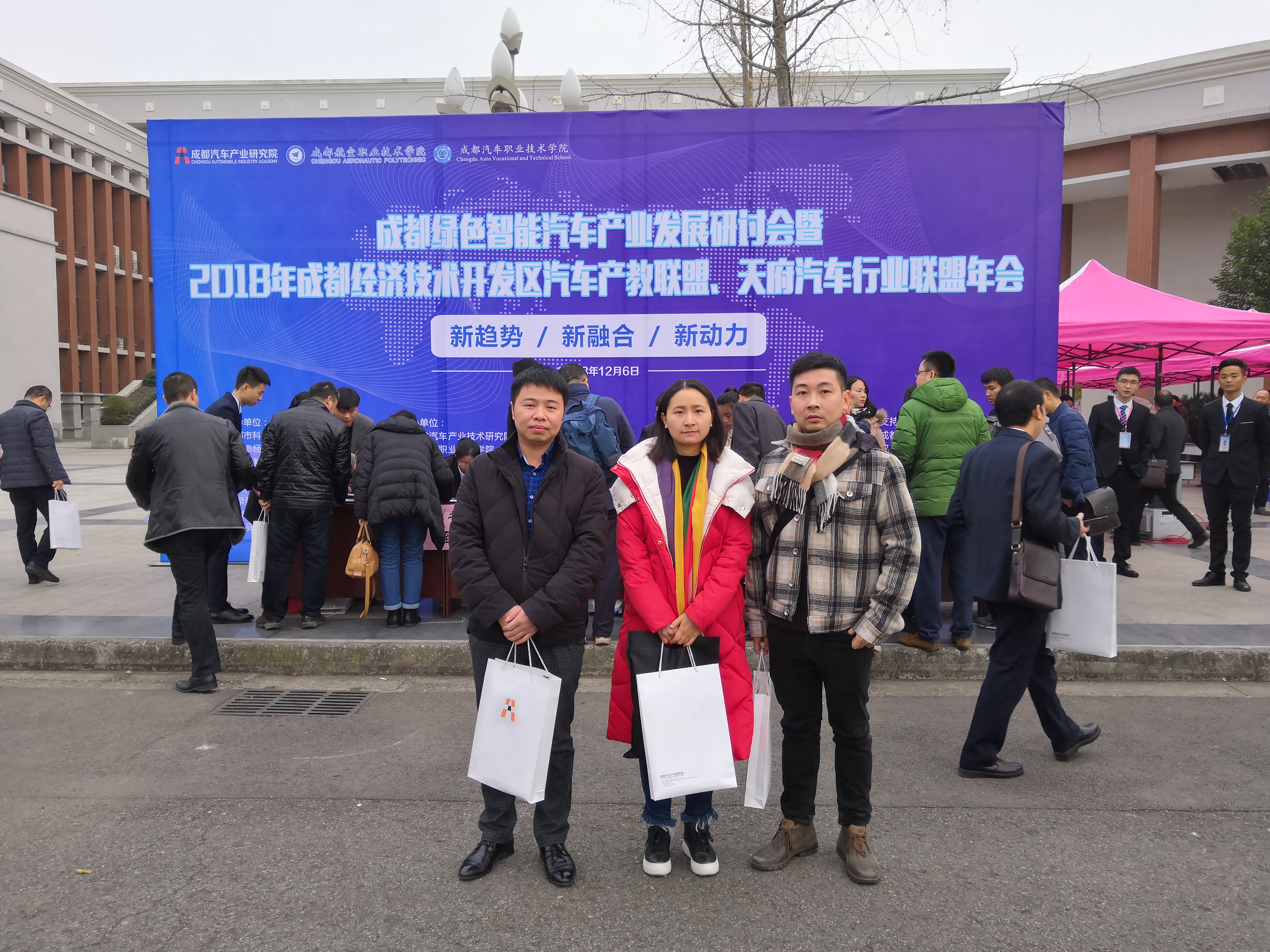 2018年12月6日,在成都航空职业技术学院举办成都绿色智能汽车产业发展研讨会暨2018年成都经济技术开发区汽车产教联盟、天府汽车行业联盟年会。四川工业科技学院智能制造与车辆工程学院作为成都经济技术开发区汽车产教联盟的会员单位,我院院长助理徐燕、教学办主任袁新、教研室主任陈松一行受邀赴成都参加了此次会议。