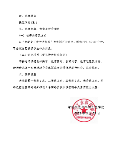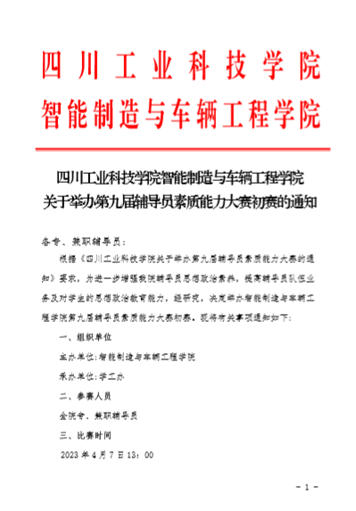 智能制造与车辆工程学院 关于举办第九届辅导员素质能力大赛初赛的通知