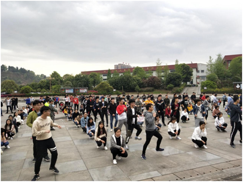4月3日早上,财经学院院长卢淑梅前往五星广场观看并指导财经学院和智能学院的同学们练习啦啦操。