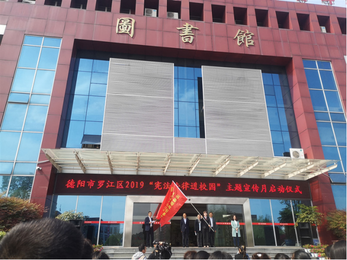 本次启动仪式,是深化“法律进学校”的重要举措,是夯实法治德阳根基的具体行动。仪式开始,校长张小南讲话中提到努力弘扬宪法精神,促进宪法法律进校园,要提高在校学生的法律素养,培育学生的法治信仰,增强法治观念。议程第二项,罗江区政府副区长、区公安分局局长陈易为法律服务志愿队授旗。议程第三项,德阳市司法局党委委员、市司法局经开区分局局长李玉龙讲话并宣布“宪法法律进校园”活动正式启动。李玉龙讲话中强调,近年来,社会上发生不少针对在校学生的恶性侵害案件,同时,校内也发生了一些在校学生违法犯罪的案件,希望学校以及学生能够引起重视,
