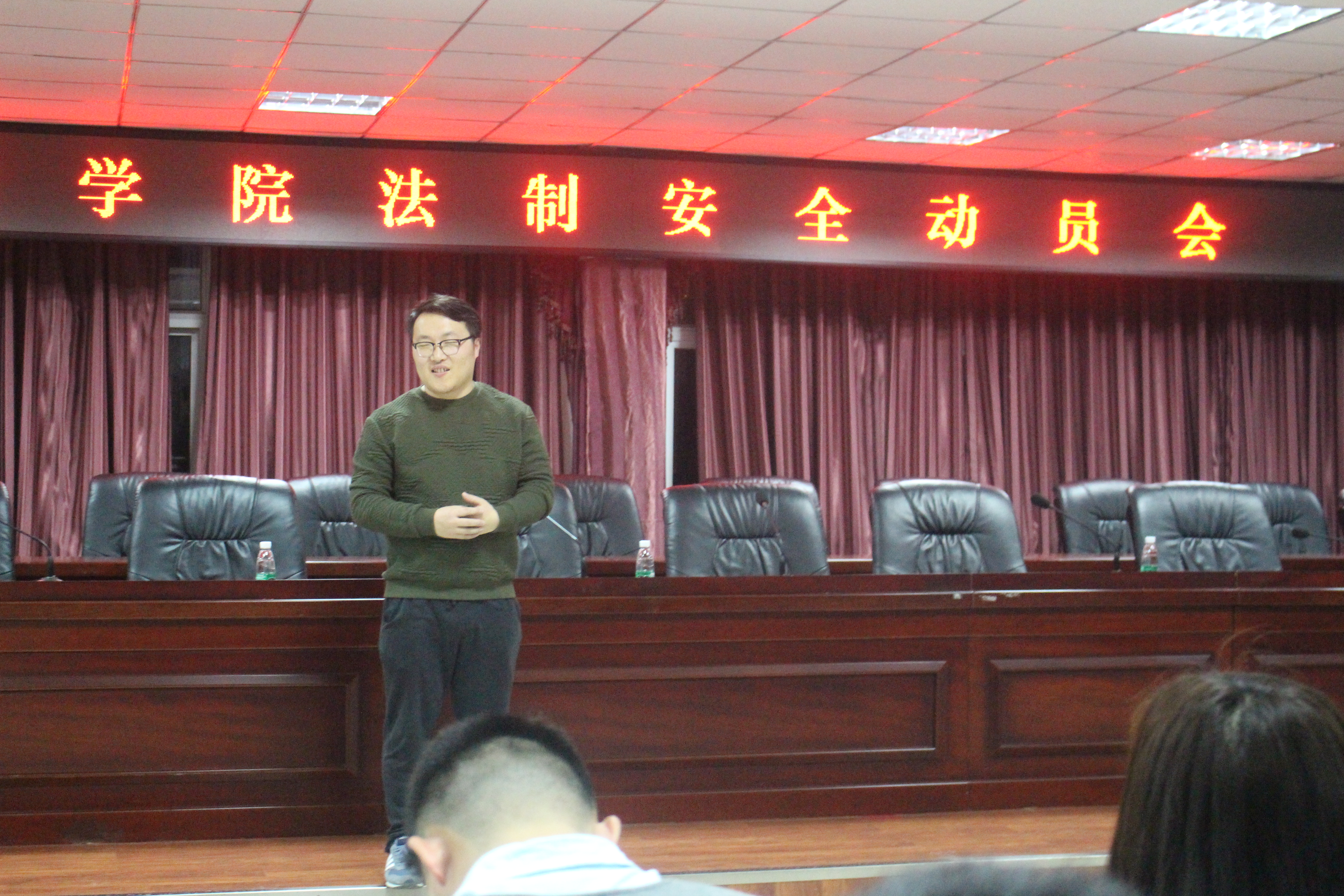 4月7日晚6点,学院召开法制安全教育动员会,学院团总支书记张东国为大家讲解法制安全教育动员工作,学院全体辅导员、部分教师代表以及全院班级班长、团支书参加此次动员会。