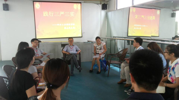 根据省委组织部、省委高校工委、校党委的统一安排部署,为进一步深入学习习近平总书记系列重要讲话精神,进一步加强作风建设,巩固和拓展党的群众路线教育实践活动成果。旅游学院于8月23日在航空中心召开“三严三实”座谈会。支部书记张胜华华、副书记何林贵、主任助理张勇,以及各教研室主任、各班辅导员和专兼职参加了此次座谈会。会议由何林贵主持。