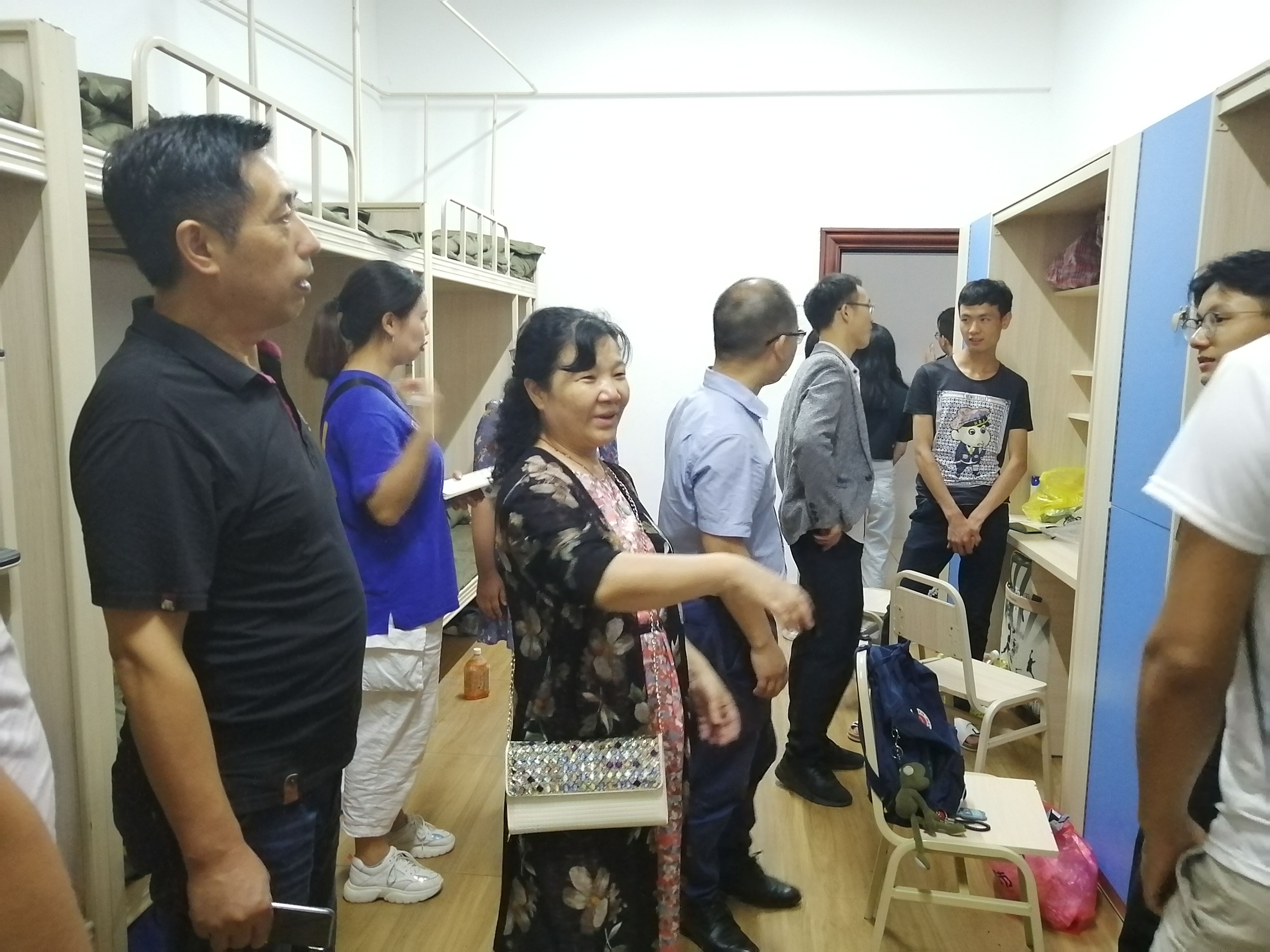 在走访寝室的过程中,学校领导以及老师询问了同学们初到学校的感受,并对他们在校的生活情况进行了了解。同学们也热情的和领导老师分享了自己刚进入大学的激动心情,同时学长学姐们也帮助新生们学习使用“工科云卡”用水软件。又提醒他们要注意宿舍的安全和卫生问题,不要使用大功率电器,妥善保管好自己的贵重物品。