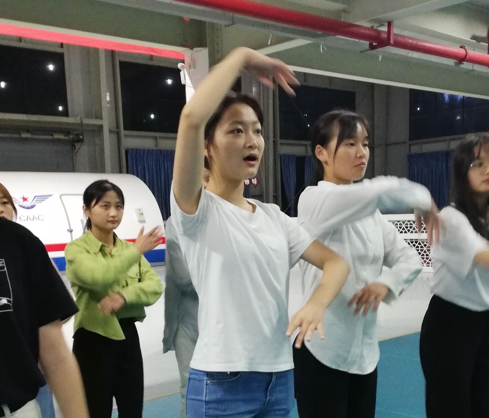 9月16日,为筹备四川工业科技学院庆祝国庆70周年暨迎新文艺晚会,管理学院学生会文艺部于航空服务实训室开展文艺节目排练,排练由文艺部负责人王诗富、邵雪梦、毛乐组织进行,管理学院部分19级新生参与。