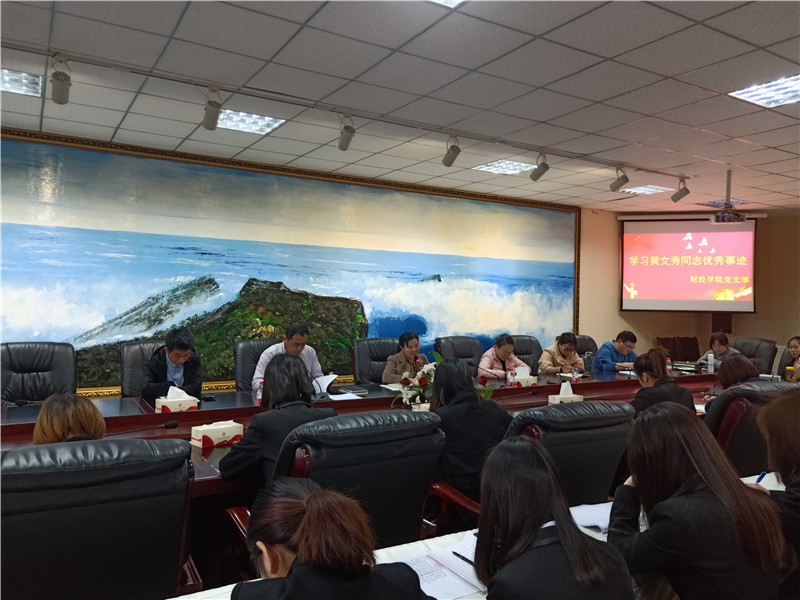 11月13日中午,财经学院党支部在我校图书馆401召开《学习黄文秀同志优秀事迹》会议。参加此次会议的有党支部书记卢淑梅、副书记杨永岗以及古宇等预备党员同志。会议由杨永岗同志主持开展。