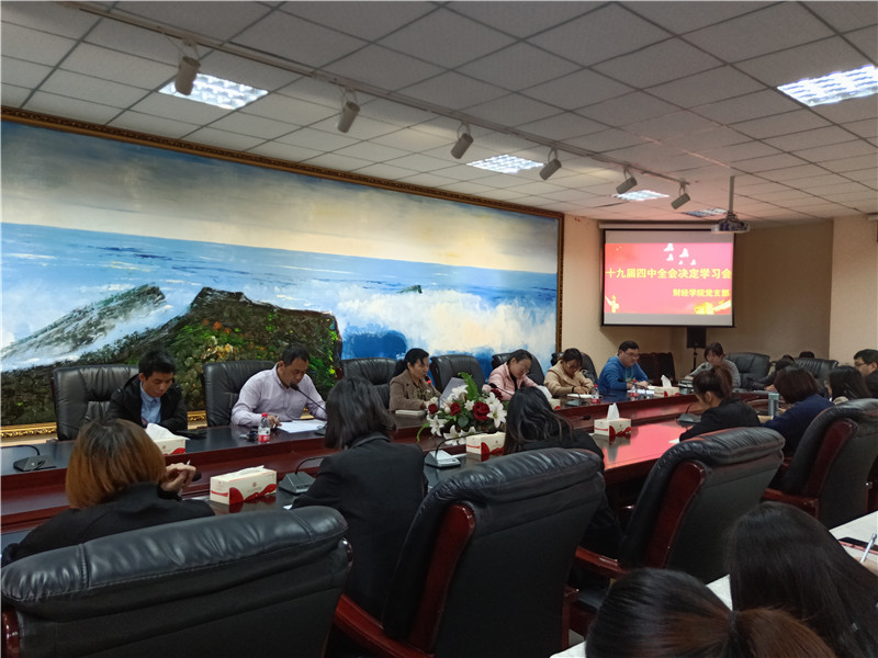 11月13日中午,财经学院在我校图书馆4楼D01进行了十九届四中全会决定学习会。出席本次活动的有财经学院党支部书记卢淑梅,副书记杨永岗,全体教师党员及部分学生党员、学生预备党员。此次会议由杨永岗同志主持,卢淑梅同志进行宣讲。