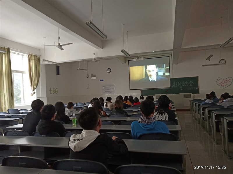 活动开始,财经学院推普员吴刘密立足当今社会现实,指出现状:随着大学生的增加,人们的素质文化水平得到显著提高的同时也给社会带来了诸多就业压力,为了合理解决就业难问题,政府出台了扶持和鼓励大学生创业的相关政策。她又简单的介绍了新东方创始人俞敏洪并留下观影问题。随后,17级财务管理2班学生李玲对影片《中国合伙人》进行了简单介绍,介绍完毕后开始放映电影。放映全程教室纪律良好,学生观看认真。