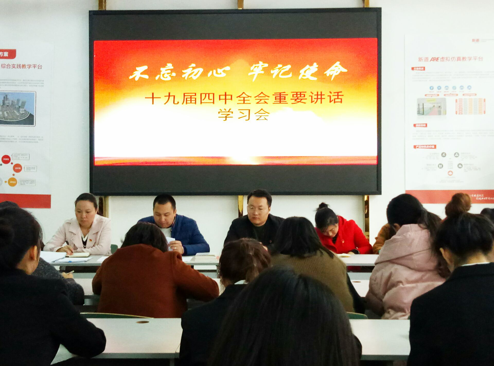 11月19日下午,管理学院党支部于ARE实训室召开十九届四中全会重要讲话学习会,学院支部书记王进,支部支委成员及全体教师到场参加。本次大会由王进主持。
