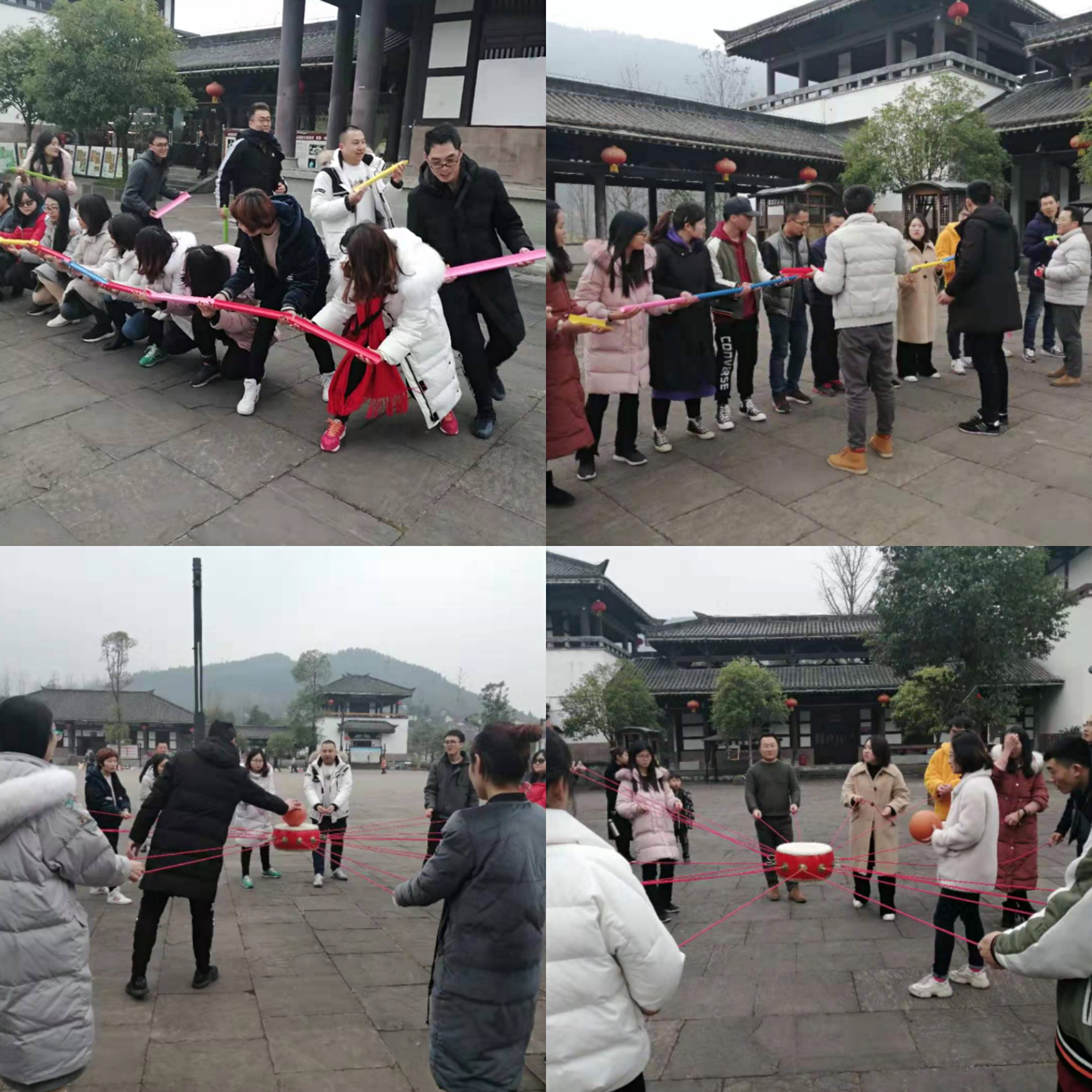 1月12日上午,管理学院全体教师在昭化古城开展了学院第一次团队建设活动,本次团建活动分为三个环节:团队口号互拼、接力传球和拉鼓击球。大家在两支队指导老师的要求下随机分为伍,进行三个项目比拼以争夺胜利。尽管天气严寒,但是老师们仍个个精力饱满,你追我赶,奋力争夺第一。比赛过程中大家各显其能,相互鼓励,欢乐不断。活动结束后,大家一起结伴游玩昭化古城,各自畅所欲言,分享成功的喜悦,总结失败的原因,同时也流露出对本次团建活动的不舍与感谢之情。