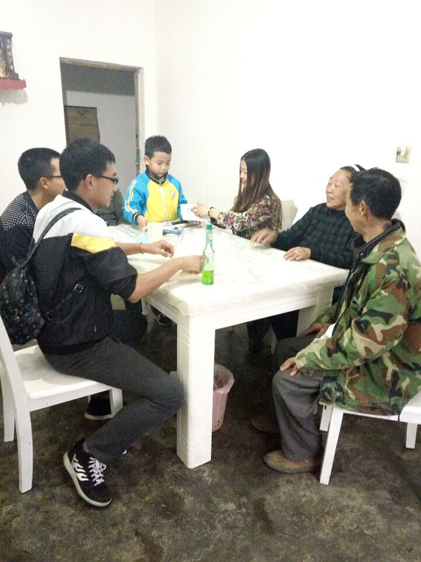 正月春光恰好,新年气息尚在。34日上午,旅游学院团总支学生分会学生代表到罗江县实验小学找到学校领导干部,了解了在校学生中贫困、留守儿童的具体情况。对其中几个典型贫困及留守学生家庭进行了一对一的帮扶。这些孩子父母常年在外打工,家中只有年迈的爷爷奶奶,并且上学路途遥远,如果是走路得走一两个小时才能到达学校。带着牛奶、水果、作业本、笔等慰问品,翻过一个又一个的山头,来到贫困留守学生家里,对学生家庭情况进行了进一步的了解,提出了相应的解决和帮扶方法。对此,罗江县实验小学领导及学生家长纷纷打电话到学校表示感谢。   (优秀学生干部王星、冉霜和陈嘉铭到小学生家辅导作业)