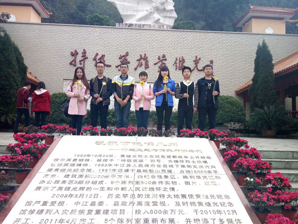 三月五日上午,雷锋日当天,学生干部代表来到中江县继光纪念馆,缅怀这位雷锋奉献精神代表——国家特级英雄黄继光。干部代表们认真的参观了继光纪念馆,并且对黄继光铜像献上了鲜花。抱着缅怀之情,在参观和献花过后,我们深深领略雷锋同志和黄继光同志这种为了国家而牺牲伟大的奉献精神。深刻的体会到了奉献的真正含义和如何更好的建设和保护自己美好的家园正确方法。
