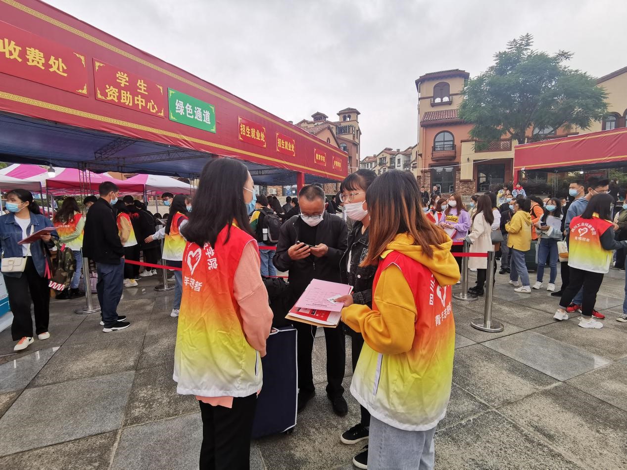 熙熙攘攘的校园里,随处可以看到志愿者们忙碌的身影。在新生入学报到期间,每位志愿者身穿志愿服,胸带志愿者胸牌,为新生指引报到流程。每当遇到有疑问的家长和同学,志愿者就会耐心的为他们解答疑惑,指引方向。