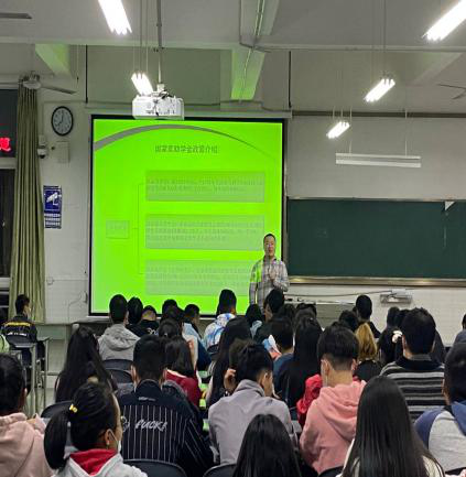 学工办主任张东国对新生提出殷殷嘱托,希望全体新生做一个有理想、有信念、有担当的大学生,于此同时,着重为新生讲解有关奖学金助学金的资助政策。