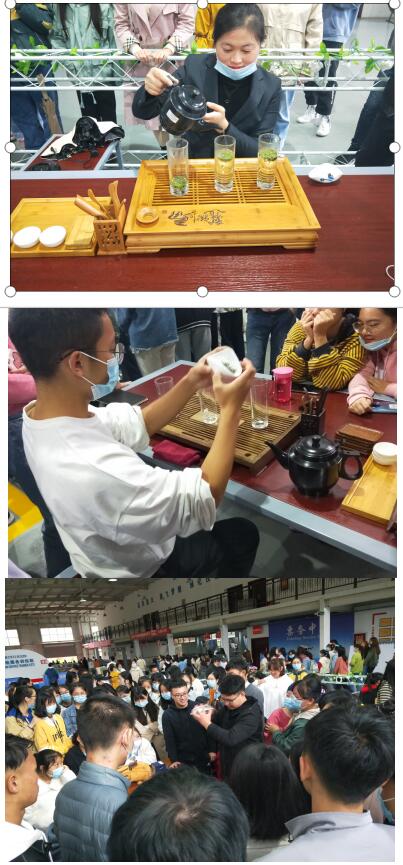 最后,毛慧老师带领新生们去参观了2018级和2019 级酒管专业的茶艺学习,以及调酒展示。张勇老师为我们展示了竹叶青的冲泡过程;学长学姐们的茶艺展示;学长柏占涛的帅气调酒。