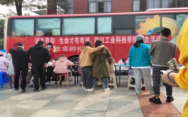 11月10日,德阳中心血站在校图书馆门口开展无偿献血活动,财经学院学生皆积极响应,无偿献血。