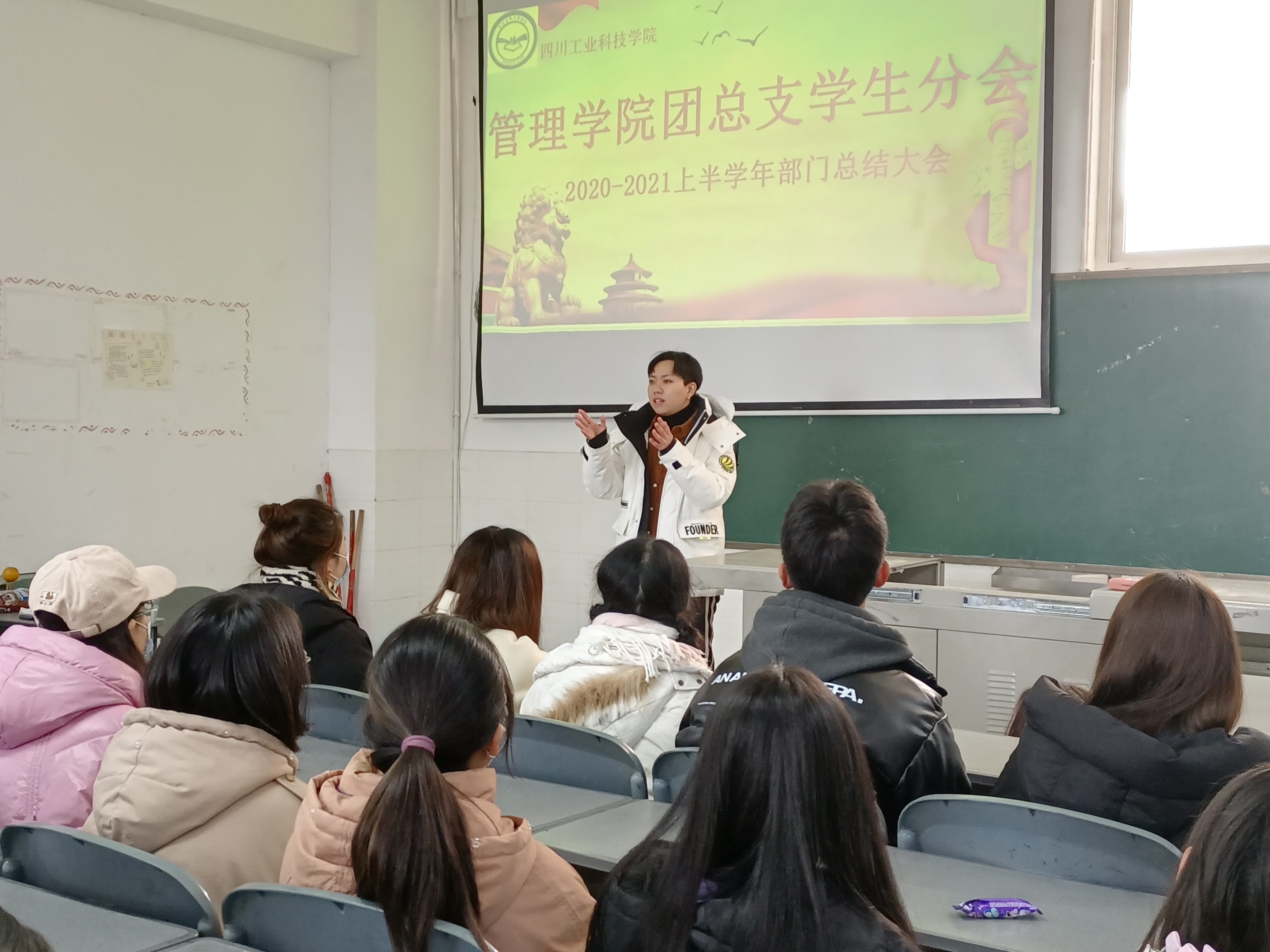 2020年12月23日,四川工业科技学院管理学院于毓秀105教室召开管理学院团总支学生分会2020-2021上半学年部门总结大会。此次会议由管理学院学生会主席团成员彭选杰主持,管理学院团总支书记邓卜豪、管理学院主席团成员及学生会全体成员出席会议。