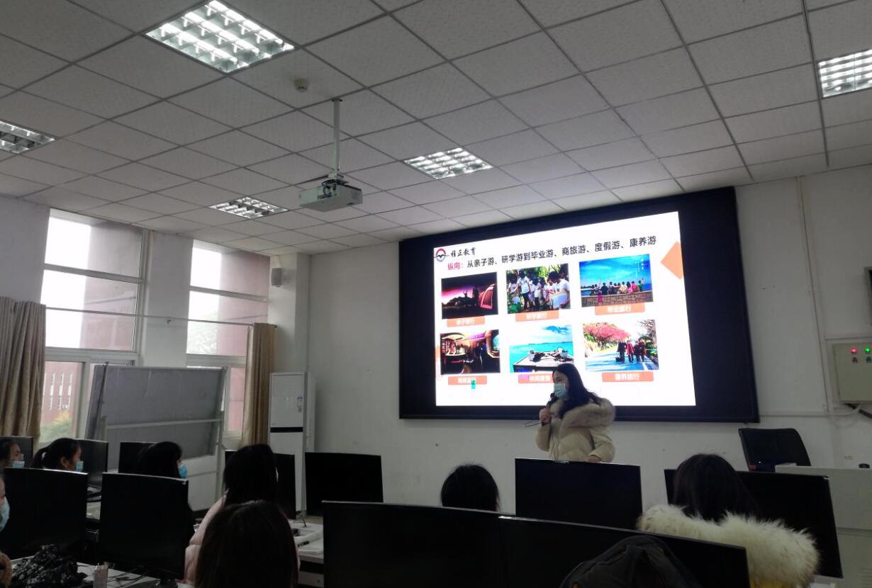 2020年12月15日,成都导游协会秘书长贺亚萍、中级导游黄磊一行3人来我校分享旅游行业发展心得。