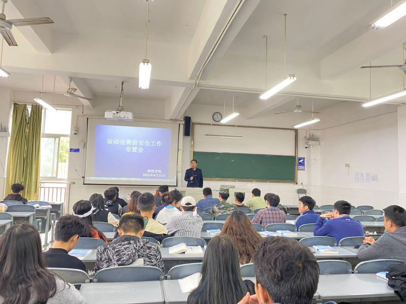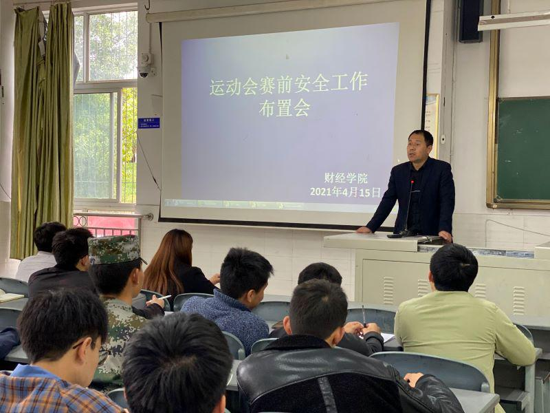 为进一步增强财经学院学生在运动会期间的安全防范意识,财经学院于4月15日中午在毓秀101举办了运动会赛前安全布置会,此次会议的主讲人是财经学院党总支副书记杨永岗,参加此次会议的是财经学院各班体育委员。