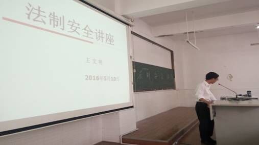 2016年5月10日中午,工商管理学院各班级代表共180余人在毓秀楼101教室参加了以“法制安全”为主题的讲座。让安全伴随生活,走进人们的心中。王文明老师指导出席此次活动。
