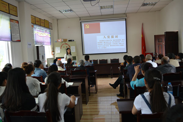 (第五支部组织委员在芒江村组织学习“两学一做”)