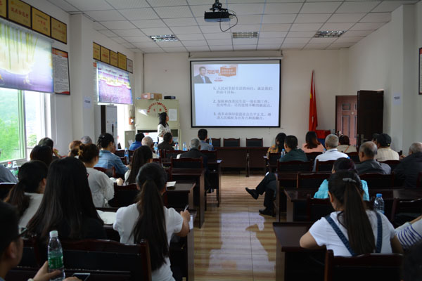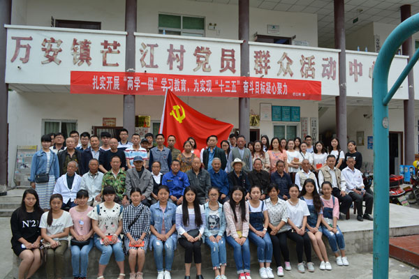 2016年5月21日上午10:00第五党支部第21期党校学员和部分党员30余人在支部副书记何林贵、宣传委员朱玉梅的带领下深入到罗江县万安镇芒江村开展“两学一做”学习教育实践活动。这次学习教育实践活动是高校党组织与农村基层党支部相互学习的一次实践,芒江村党支部书记唐学清、组织委员曲华勇等39名党员到会学习。会议由唐学清主持。会上,学校第五支部副书记何林贵对本次活动开展的目的、意义做了全面的讲解,并希望通过本次活动使高校能为地方的经济发展提供有效服务,让农村基层党支部能更及时、更清楚地了解国家的政策方针,能更好地造福百姓。接下来朱玉梅老师组织大家学习了《关于在全体党员中开展“学党章党规、学系列讲话、做合格党员”学习教育》,并且重温了入党誓词及中国共产党章程收到了很好的效果,特别是讲到关于习总书记谈到改善民生和创新社会治理10个方面问题时,村基层支部的老党员们不约而同地响起了热烈的掌声。