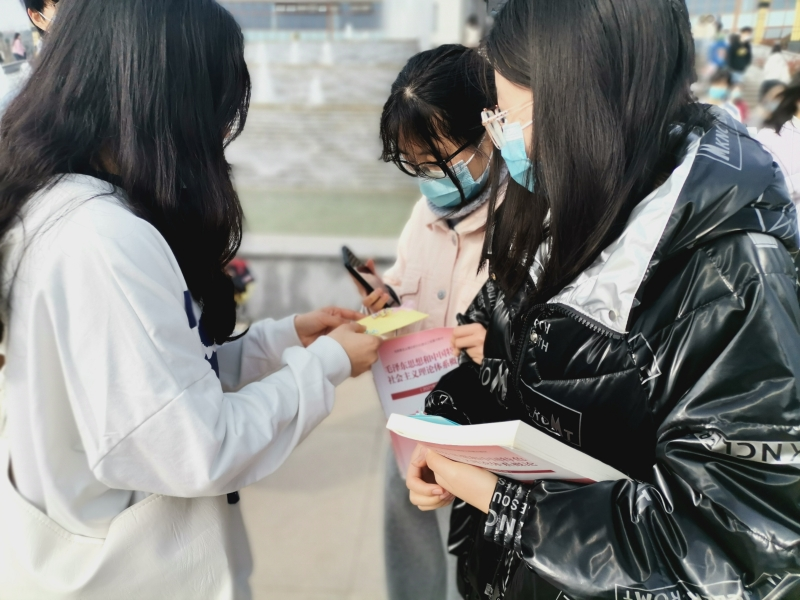 财经学院的干事们也来到操场边、教学楼下,为其他学院的女老师以及同学们送上了贺卡并赠赋祝福。