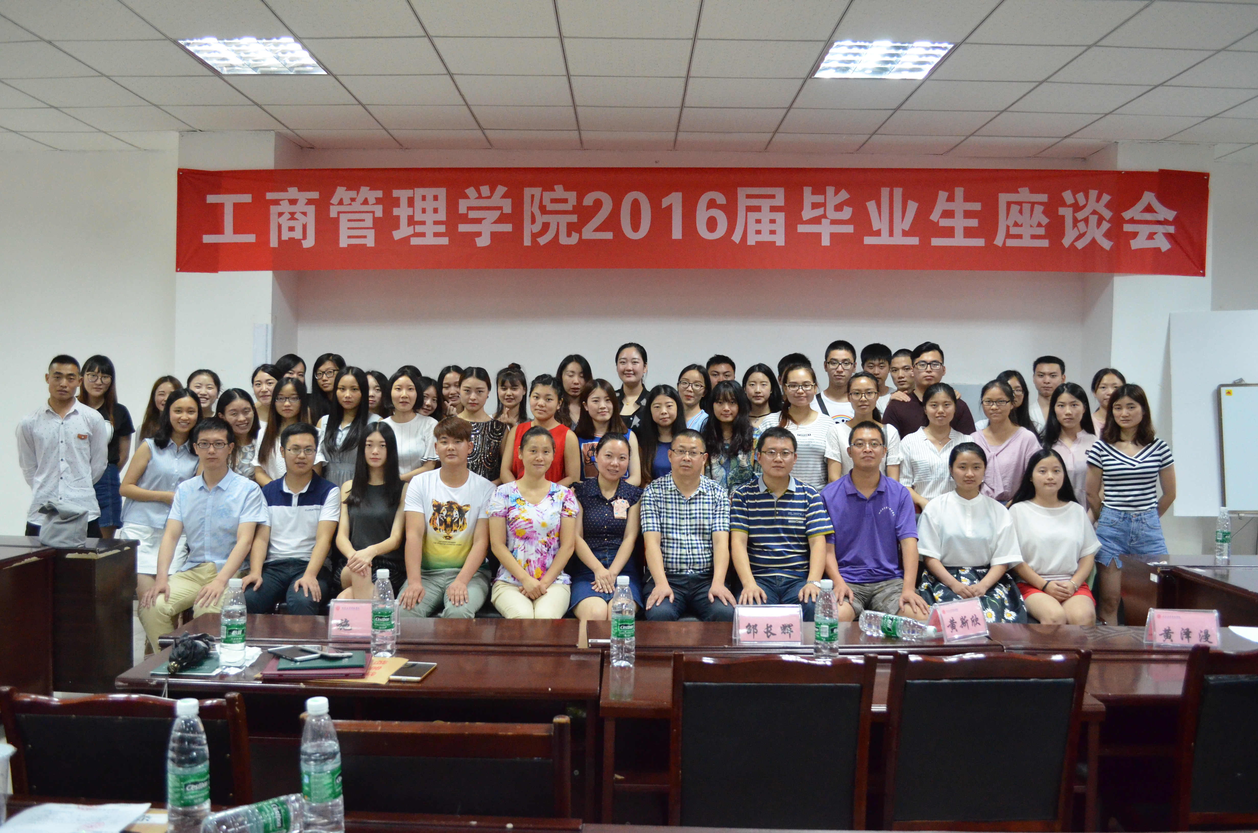 2016年7月9日,在学校图书馆D08会议室,工商管理学院2016届毕业生座谈会顺利举行。学校副校长黄斯欣、工商管理学院副书记邵长辉、学工干事施杨、辅导员黄译漫、费真桥及我院60余名毕业生代表出席了本次座谈会,会议由施杨主持。