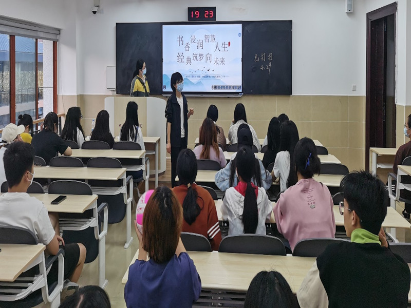 莎士比亚曾说:“生活里没有书籍,就好像没有阳光;智慧里没有书籍,就好像鸟儿没有翅膀。” 为了迎接第27个世界读书日,丰富疫情期间大学生的课余生活,让更多的大学生认识经典、喜欢经典、激发阅读经典的热情,传扬中华民族优秀的传统文化,助力大学生成长与成才,丰富通识教育第二课堂,营造更加浓郁的校园书香氛围,管理学院各班级于2022年5月1日晚7:30在各自教室开展以“书香浸润智慧人生,经典筑梦向未来”为主题的班会。