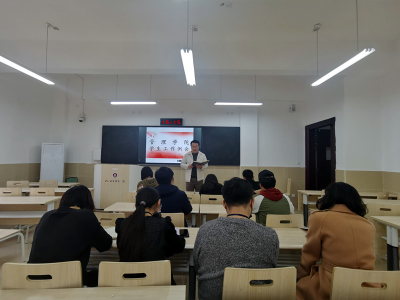 5月7日下午,管理学院学工队伍于龑江学村B312召开了管理学院期末学生工作会议,全体辅导员老师与会,学院党总支副书记张东国主持会议。