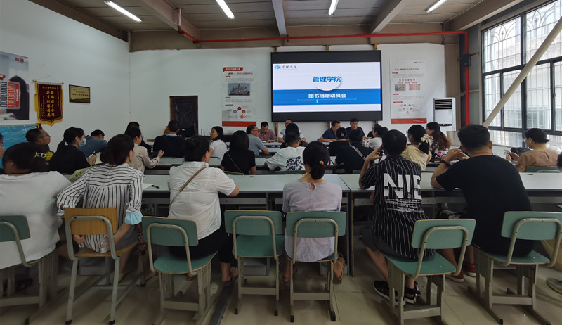 传递书香,点亮未来。为了有效利用书本资源,传递知识与爱心,共享图书资源。2022年8月3日下午,管理学院党总支书记、院长王进在ARE实训室主持开展了管理学院图书捐赠动员会。管理学院全体教师参加会议。