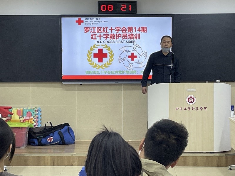 为进一步普及应急救护常识,大力弘扬“人道、博爱、奉献”的红十字精神,让师生了解急救、自救知识,提高自救、互救能力。2022年9月17日至18日,经济管理学院在龑江学村B401开展了红十字救护员的培训活动。罗江区红十字会工作人员肖宾,经管学院党总支副书记杨永岗、22级各班班长及安全委员参加了本次培训。
