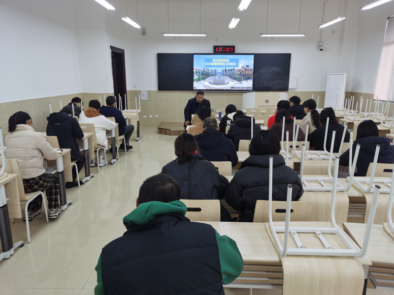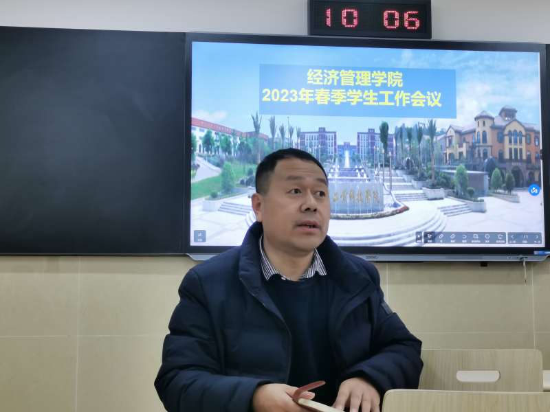 为保障2023年春季开学工作顺利进行,2月20日上午,经管学院在龑江B401召开了2023年春季学生工作安排会,学院党总支书记王进、副书记杨永岗,学工办主任张骏,以及全体辅导员参加。