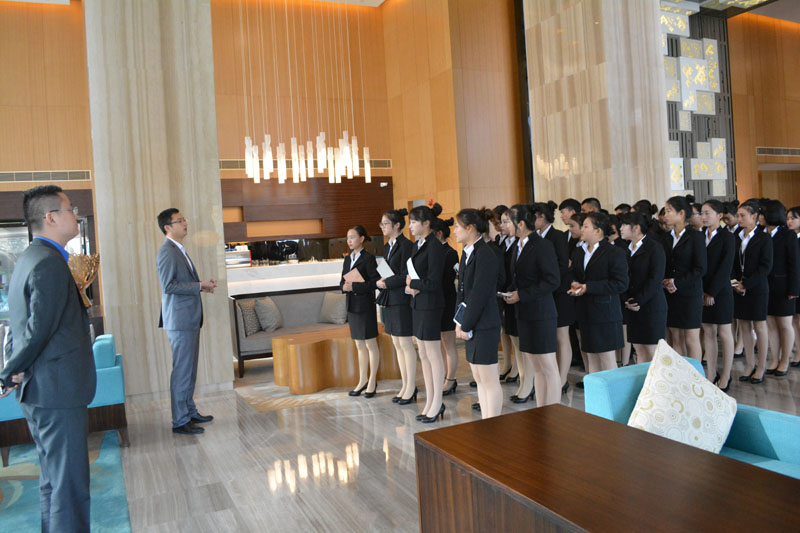 近日,旅游学院2016级酒店管理专业启动了酒店见习项目,旨在让学生熟悉饭店内外环境,了解酒店的基本功能。要求通过本次见习让学生了解酒店分类标准及星级评定,感知酒店外部环境,掌握酒店内部组织结构,用人机制和工作流程。