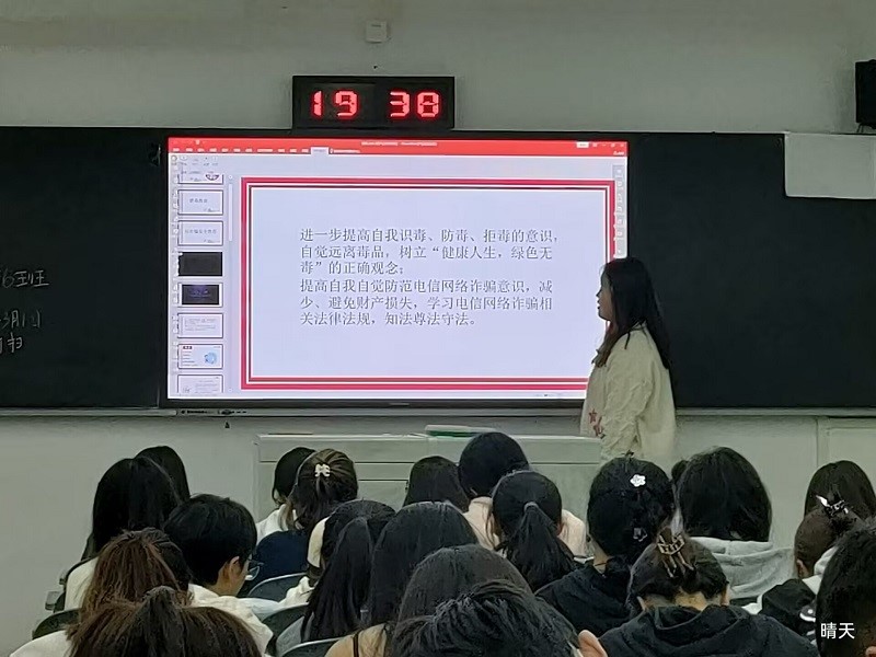 班会活动主要内容通过幻灯片呈现,辅导员深入浅出给同学们讲述了的毒品的有关知识。帮助同学们进一步了解毒品和电信诈骗,提高防范意识。最后,同学们通过交流感受和提出建议,加深了对班会主题的认识和理解,使每一个同学心中都建筑起拒绝毒品,预防诈骗的基础堡垒。