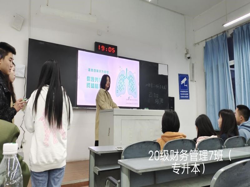 为了广泛深入、科学有效的向师生普及结核病、流行感冒等核心知识,全面提升全校师生预防传染病的能力,规范日常行为。3月19日,20级财管7班(专升本)在钟灵楼401召开“你我共同努力,终结结核流行”和“日常行为规范教育”主题班会。
