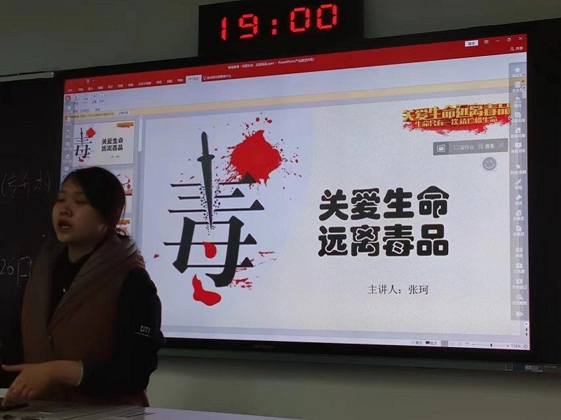 在班会过程中,老师通过案例分析、PPT演讲、知识问答等形式强化了同学们毒品预防意识。让大家识别什么是毒品,毒品的危害对人体产生的影响,使学生对禁毒有了一个深刻的理解。引导同学们积极思考,加深了对法律法规的了解及对毒品的认识,从而让同学们远离毒品。