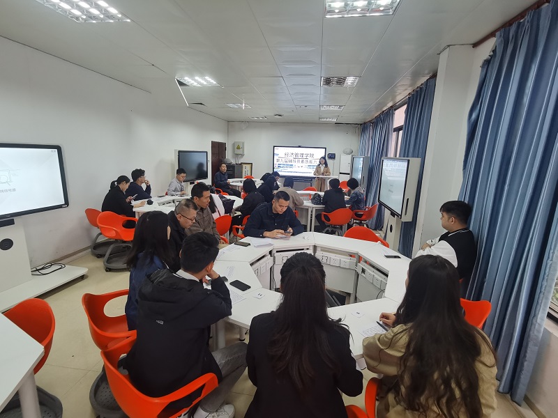 第九届校辅导员素质能力大赛即将举行,经管学院辅导员积极准备,于4月13日上午九点,在航服实训室智慧教室举办了本次大赛的院内赛。经管学院院长王进,党总支副书记杨永岗,院长助理王波,教师代表张勇,及全体辅导员参加。王进、杨永岗,王波和张勇为本次比赛的评委。