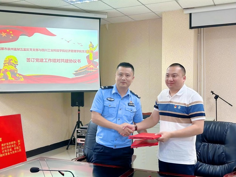 在本次会议中,经济管理学院党总支与四川省崇州五监区党支部完成结对共建签约仪式。崇州五监区党支部对党建帮扶优秀党员学生进行慰问。