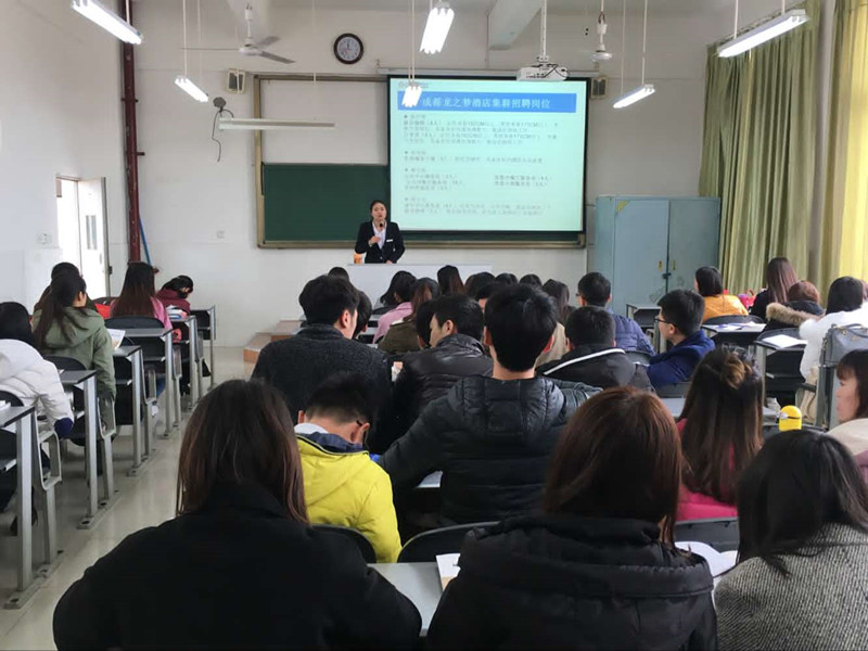 本次交流会邀请到成都龙之梦大酒店人力资源部曾总监和酒店各部门经理,他们从企业的角度介绍了龙之梦酒店的企业文化、发展理念、人才策略以及管理培训方法、员工薪资福利等,同时为我们详细介绍了各部门的具体工作和岗位要求,最后结合自身经历与同学们分享了成功的经验和心得激励大家要有挑战自己的信心和勇气,积极面对接下来的实习工作
