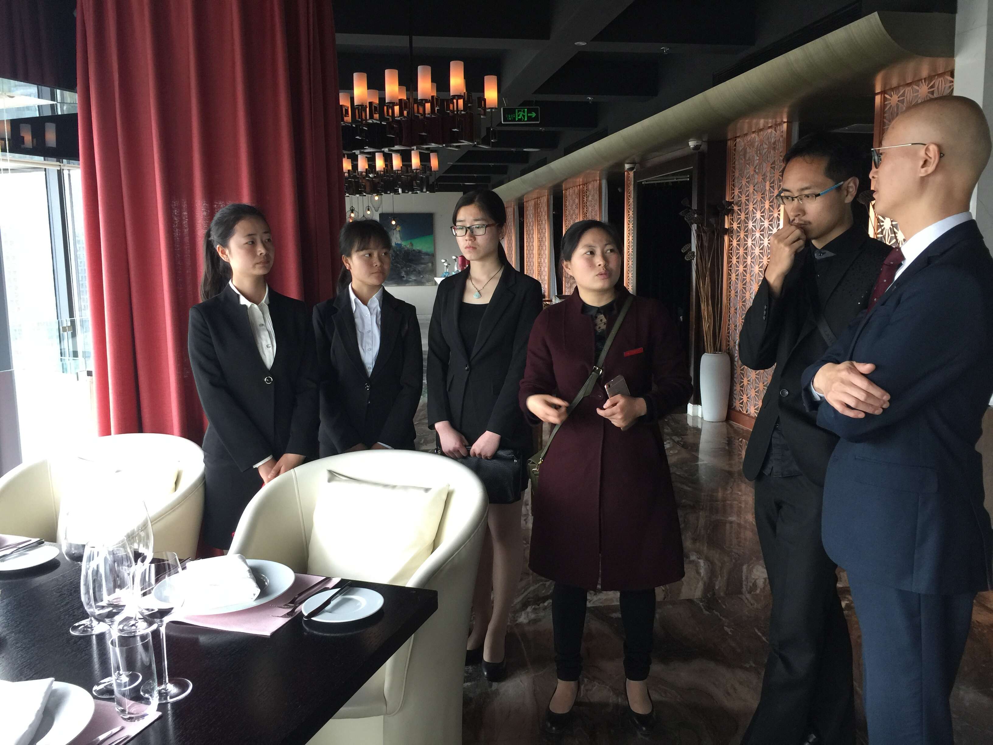 为提升我校参赛选手的专业水平,4月10日,在旅游学院院长助理张勇及专业教师杨朔的带领下四位参赛选手来到了成都岷山饭店进行学习交流。
